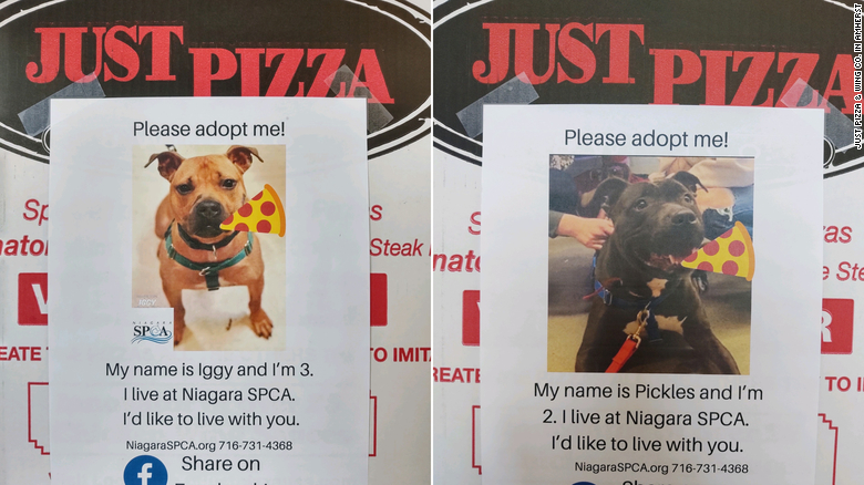New York pizza franchise Just Pizza & Wing Co. in Amherst, New York, is doing what it can to help adoptable dogs find their forever homes by attaching flyers of adoptable dogs to its boxes. And the yummiest part? Anyone who adopts a dog featured on a pizza box flyer will receive a $50 gift certificate to the pizza shop.
