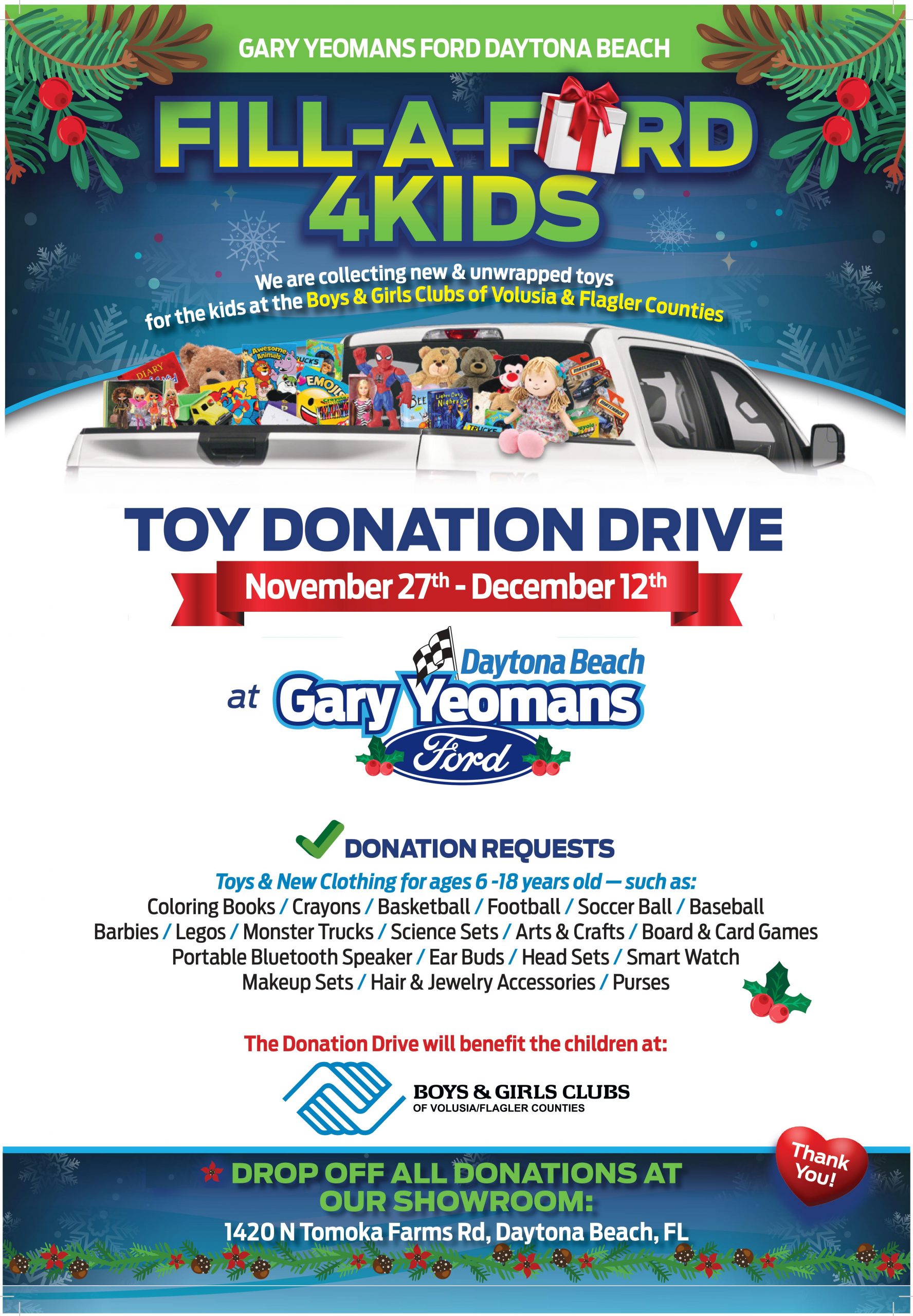 Donate a Toy at Gary Yeoman’s Ford Daytona Beach And Get $10 Off Your Next Oil Change! November 30, 2021 Joel Hinton Past Events 0
