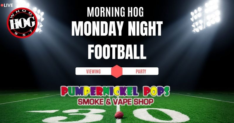 Join The Morning HOG at PUMPERNICKEL POPS in Deland every Monday for a TOUCHDOWN THROWDOWN Monday Night Football pre-game party where RIGGS & STEVE will recap the weekend picks and get you ready for the game that will decide the weekly winner! Come check out Pumpernickel Pops for all your smoke, vape & CBD needs!