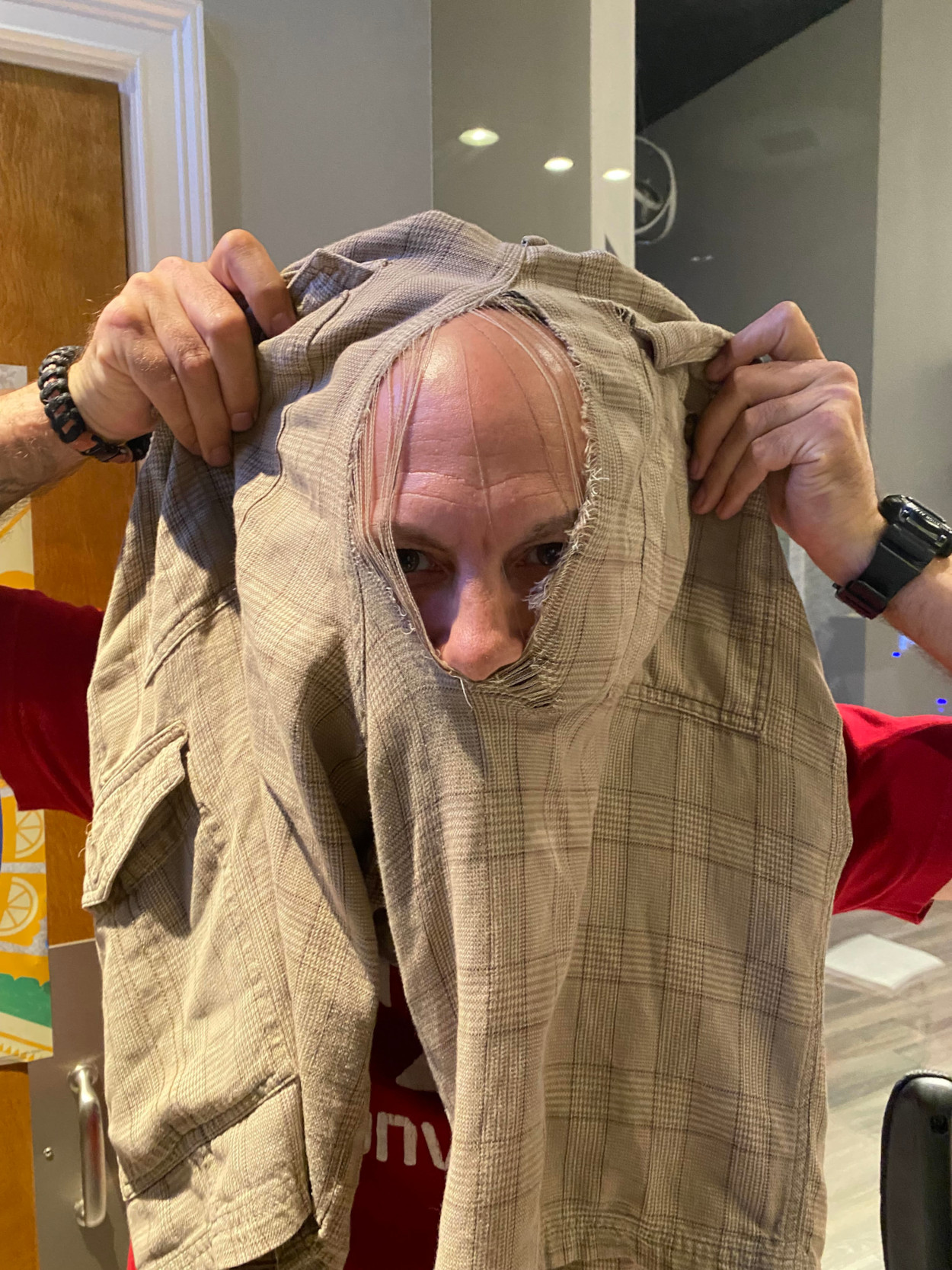Maybe this is a sign that Intern $teve needs to lose some weight. What we do know is that he needs more shorts. Who should he call? A neighbor? A relative? You tell us!